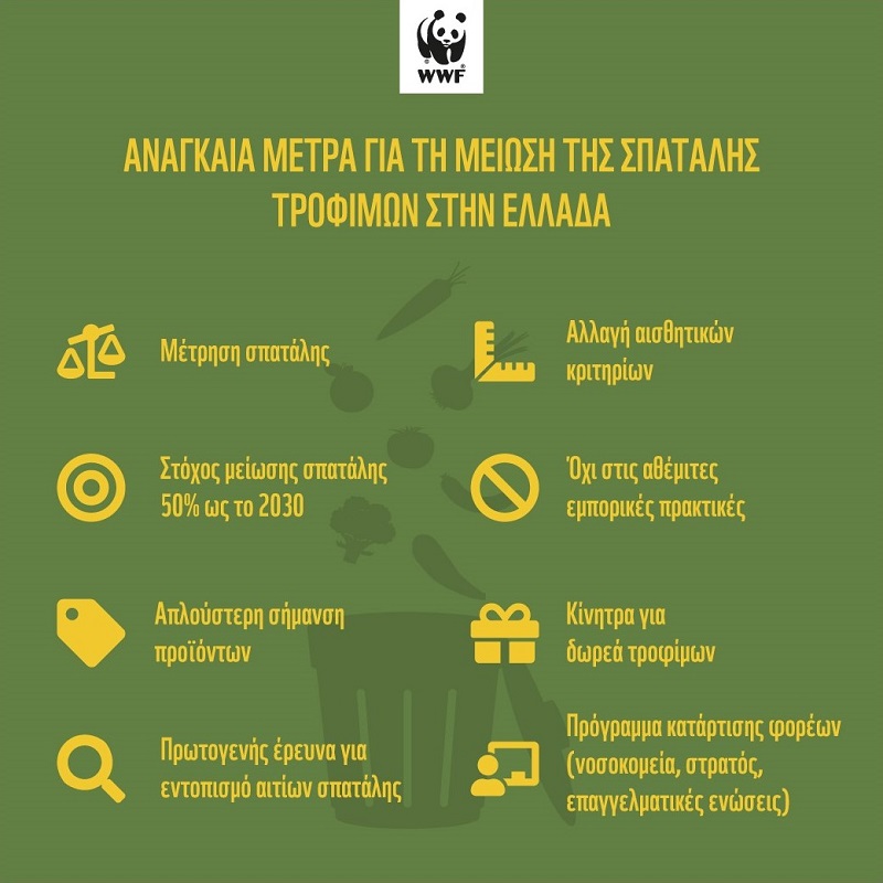 Παρότι στην Ελλάδα σημειώνεται εδώ και χρόνια οικονομική και κοινωνική κρίση, με σημαντικό αριθμό πολιτών να μαστίζεται από επισιτιστική ανασφάλεια, οι νομοθετικές πρωτοβουλίες που έχει αναλάβει μέχρι στιγμής η χώρα για τον περιορισμό της σπατάλης τροφίμων (π.χ. η απαλλαγή ΦΠΑ για δωρεές τροφίμων με τον ν. 4238/2014) είναι ελάχιστες και δεν επαρκούν. Παράλληλα, η Ελλάδα δεν διαθέτει ακόμη στοιχεία για το μέγεθος της σπατάλης ή την ποιοτική σύσταση των υπολειμμάτων τροφίμων, ενώ το νέο Εθνικό Σχέδιο Διαχείρισης Αποβλήτων (ΕΣΔΑ), που δημοσιεύτηκε τον Αύγουστο, δεν κάνει καμία απολύτως μνεία σε δράσεις περιορισμού της σπατάλης. Αντιθέτως, βάσει του ΕΣΔΑ, εκτιμάται ότι στην Ελλάδα δεν θα παρατηρηθεί μείωση έως το 2030.